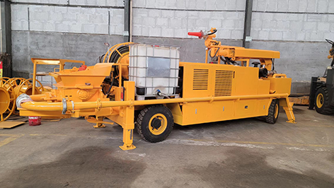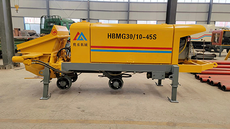 工作原理:當(dāng)液壓系統(tǒng)壓力油進(jìn)入一主油缸時(shí),活塞桿伸出,同時(shí)通過密封回路連通管的壓力油使另一活塞桿回縮。與主油缸活塞桿相連的混凝土輸送活塞回縮時(shí)在輸送缸內(nèi)產(chǎn)生自吸作用,料斗中的混凝土在大氣壓力作用和攪拌葉片的助推作用下通過滑閥吸入口被吸入輸送缸。同時(shí),另一主油缸在油壓的作用下,推動主油缸的活塞桿伸出并同時(shí)推動混凝土活塞壓出輸送缸中的混凝土,通過滑閥輸送口Y字管進(jìn)入混凝土輸送管。動作完成后,系統(tǒng)自動換向使壓力油進(jìn)入另一主油缸,完成另一次不同輸送缸的吸、送行程。如此反復(fù),料斗里的混凝土就被吸入和壓送出輸送缸,通過Y型管和出口連接的管道到達(dá)作業(yè)點(diǎn),完成泵送作業(yè)。