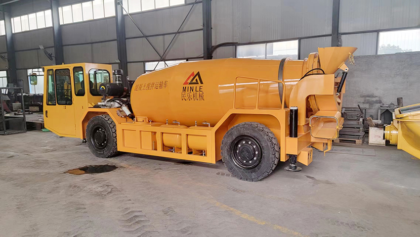 礦用防爆柴油機無軌膠輪車/混凝土攪拌運輸車主要用于煤礦井下巷道中作業(yè),具機動性強、體積小,車身窄、高度低等特點,能同時完成攪拌和運輸作業(yè)。該車以防爆柴油機為動力,具有維護方便、性能等特點。該車采用靜液壓傳動方式,傳動效率高、油耗低、簡單可靠;該整車結構新穎、性能優(yōu)良、運輸效率高,是大中型煤礦及有瓦斯和粉塵爆炸危險環(huán)境的混凝土攪拌輸送車產(chǎn)品之一。具體特點有: