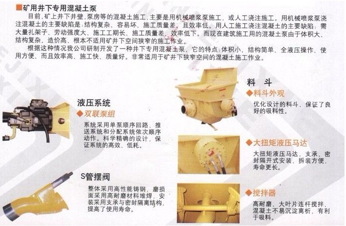 細(xì)石混凝土泵配件有:主油缸、砼缸、三相異步電機(jī)、主油泵、料斗、S管、電配柜、手動(dòng)油泵、活塞;00#鋰基脂;常用的電器配件(按鈕天關(guān)、行程天關(guān)、斷路器、接線端子、變壓器等)、液壓液管;46#液壓油;眼睛板、切割環(huán)(當(dāng)設(shè)備打到5000方以上就可以備了)等等。