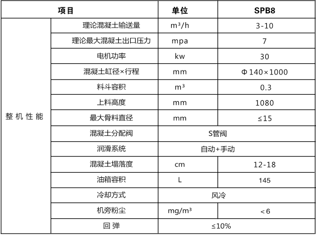 SPB8型濕式混凝土噴射機(金屬礦山專用)主要技術參數(shù):